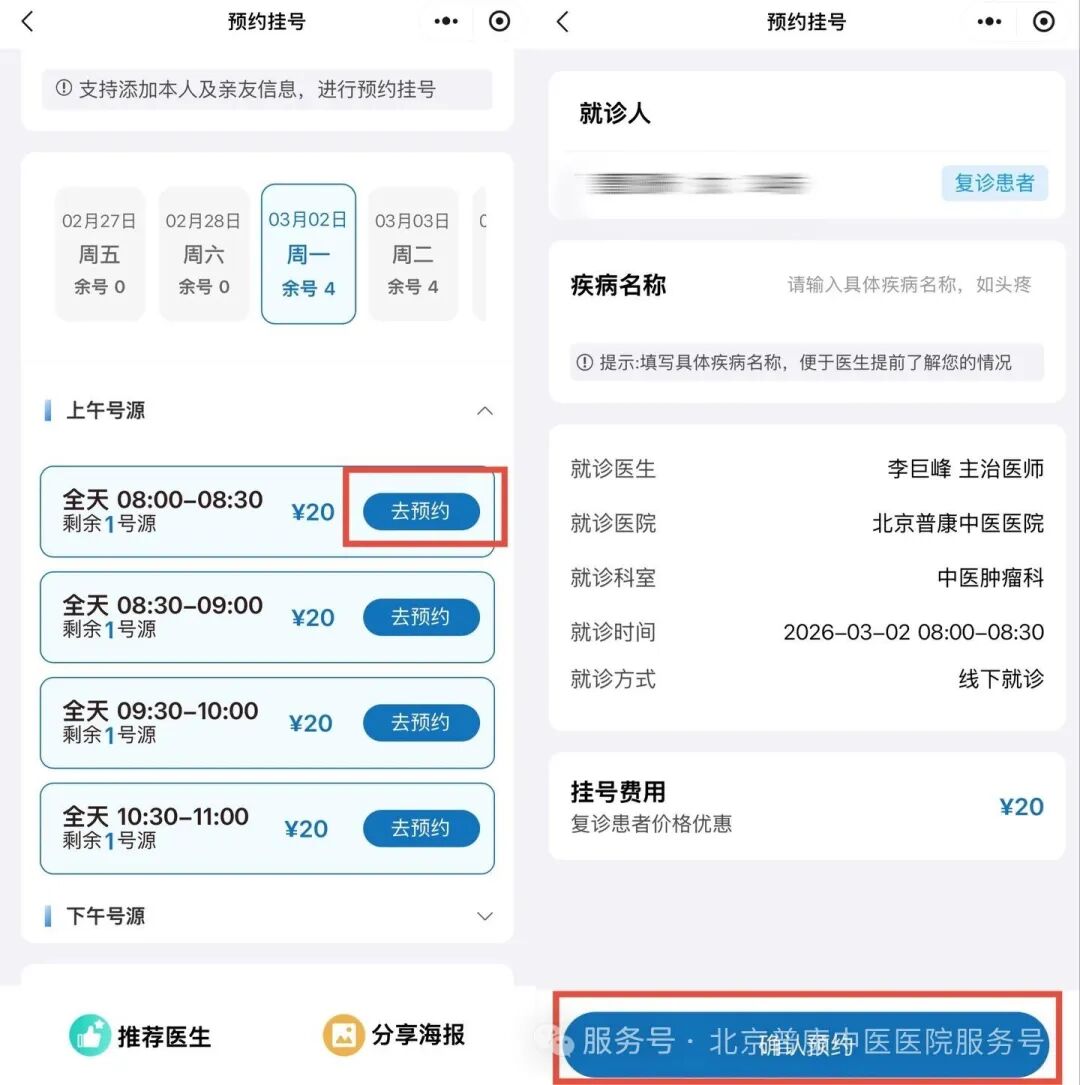 微信搜索🔍“北京普康中医医院”小程序即可进入,老人、子女代操作都零门槛。