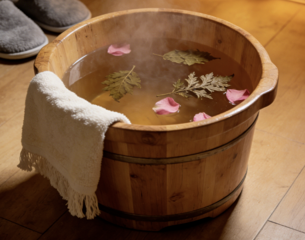 脚是我们的“第二个心脏”,脚底有很多穴位,泡脚能够打通全身经络。准备一盆水温40-45℃的水泡脚即可,还可以根据医生的建议放一些艾叶、生姜片等,泡完脚后你会感觉脚底板暖呼呼的,身上也暖呼呼的。